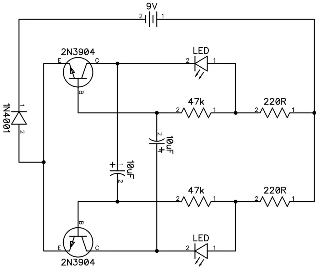 A Winky Blink is considered to be a very simple electronic circuit that can be used to create an LED (light emitting diode) blink or flash (flashing requires clean soldering and that’s what I tired to do.) The circuit utilizes a resistor, a capacitor, and a transistor to power up the LED.